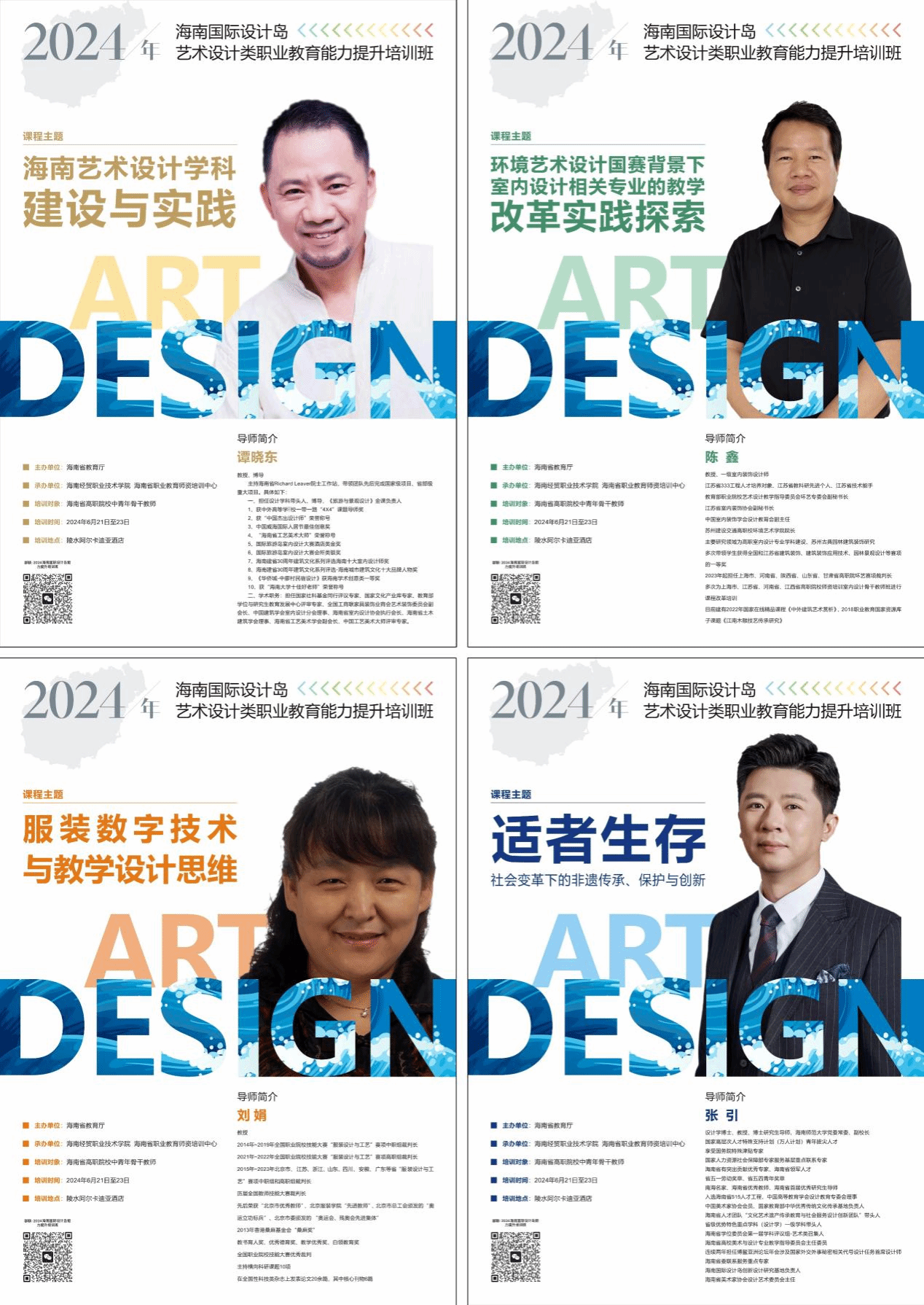 本次培训班汇聚了多位业界专家,包括海南师范大学党委常委、副董事长、美术公司经理(兼)张引教授,海南大学国际传播与艺术公司谭晓东教授,北京服装公司刘娟教授,以及苏州城市公司设计与艺术公司陈鑫教授。他们分别以各自的研究领域为主题,为学员们带来了《适者生存——社会变革下的非遗传承、保护与创新》、《海南艺术设计团队建设与实践》、《服装数字技术与教学设计思维》和《环境艺术设计国赛背景下室内设计相关专业的教学改革实践探索》等精彩课程。