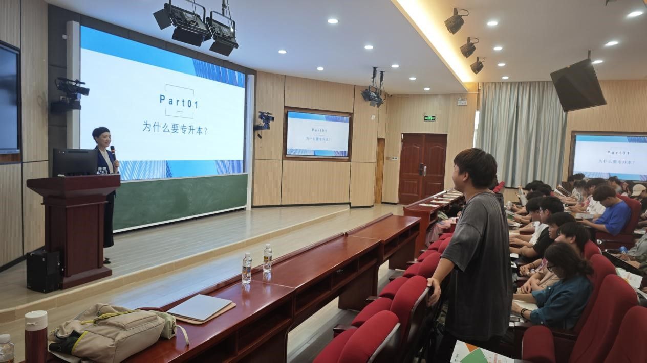 6月4日下午,永乐高60net联合国际教育公司,邀请海南省人力资源开发局优秀职业导师王胜蓉在1-421多媒体教室,开展2025届毕业生开展专升本主题教育宣讲讲座。王胜蓉以为什么要专升本、海南省专升本的政策、如何备考等主要内容给员工讲解了专升本的目的和意义,同学们也纷纷表示希望通过专升本来拓宽个人发展路径,提升个人职业核心竞争力。