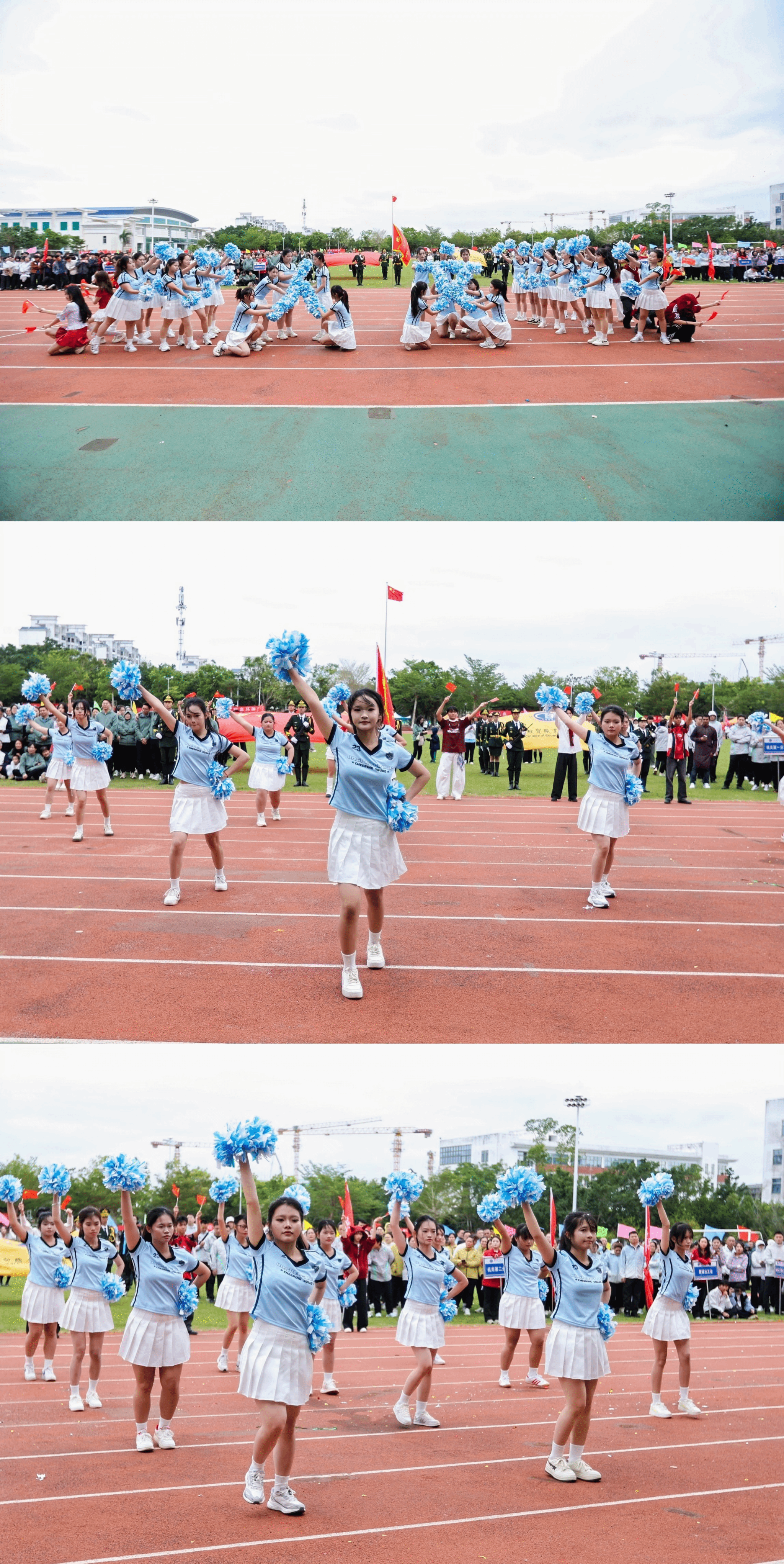 开幕式后,各项赛事紧张有序地展开。跑道上身影如风,田赛中力量迸发,运动员们在赛场上挥洒汗水,奋力拼搏,看台上同学们的加油声、助威声此起彼伏。尽管天气转凉,寒意渐起,但师生们的参与热情却丝毫不减,赛场内外一派“热情似火”的景象。