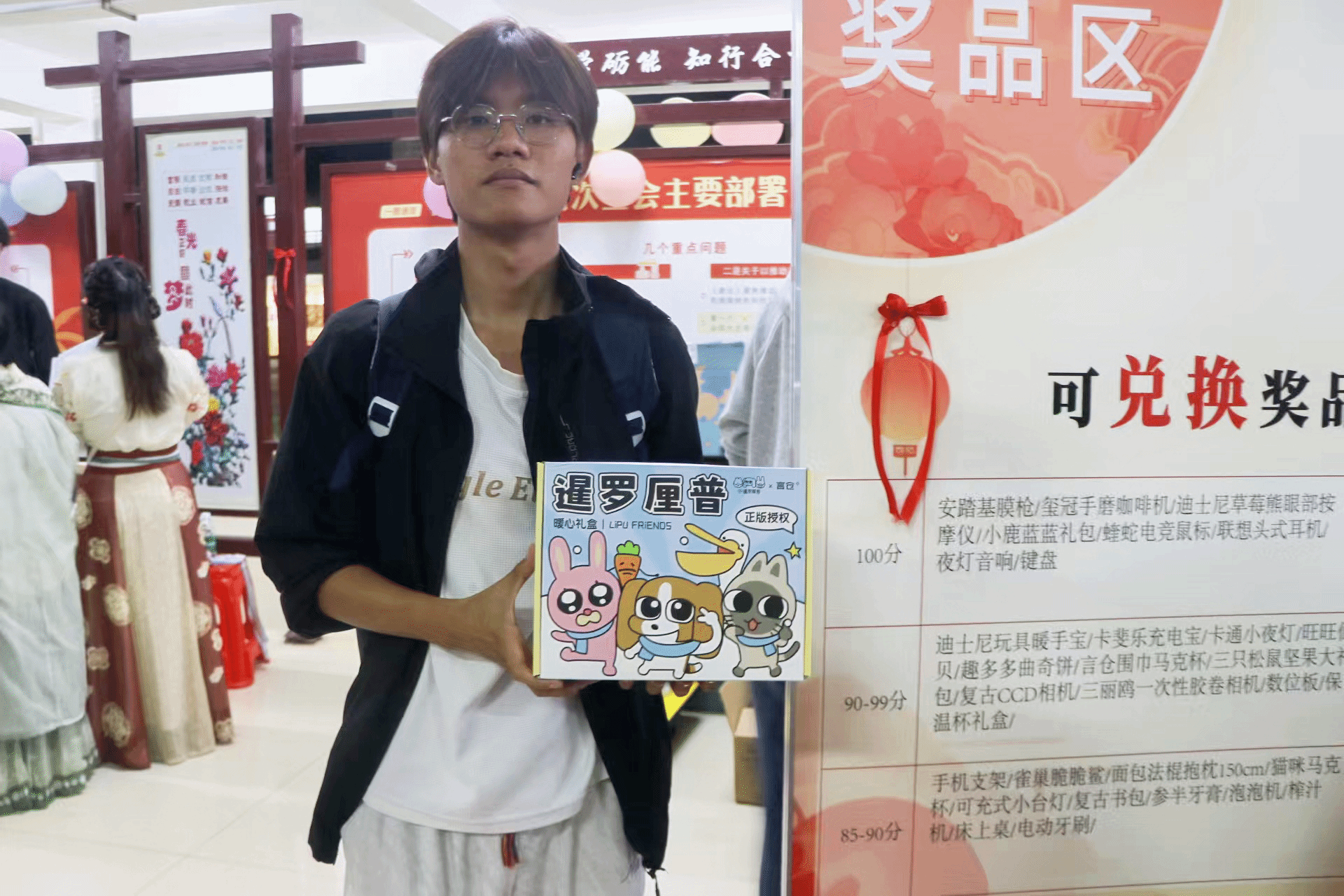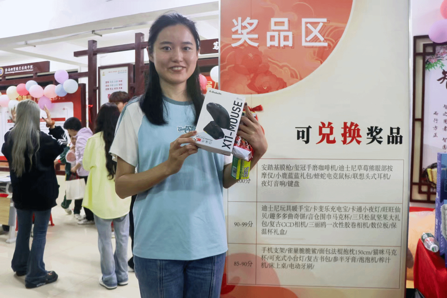 手握满满积分的同学们,在兑换区收获颇丰。从安踏筋膜枪、电竞鼠标等实用好物,到各色精致小礼品,每一份奖品都承载着岁末的专属喜悦。大家手捧心仪的战利品,脸上洋溢着满足的笑容,定格下属于 2025 年末的温馨瞬间。