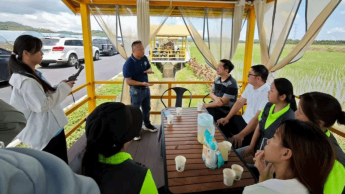 团队深入定安县岭口镇封浩洋,了解皇州封浩洋稻鸭生态种植模式。海南省劳动模范王代杰作为返乡创业带头人,实现了“从卖稻米到卖品牌”“从会种田到慧种田”“从种庄稼到种风景”的三重变化,依托当地富硒黑土地和山泉水等优质种植资源,优选“海南好米”品种,推出不同规格产品打入会员团购和礼品市场,并通过水稻、瓜菜轮作提升产值;目前正依托定安“村咖”品牌,打造稻田咖啡,还将进一步发展田间研学实现农文旅融合,并利用闲置校舍打造农民田间公司,培养高素质职业农民和返乡创业人员。