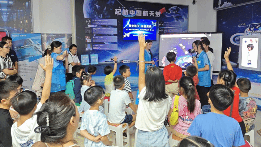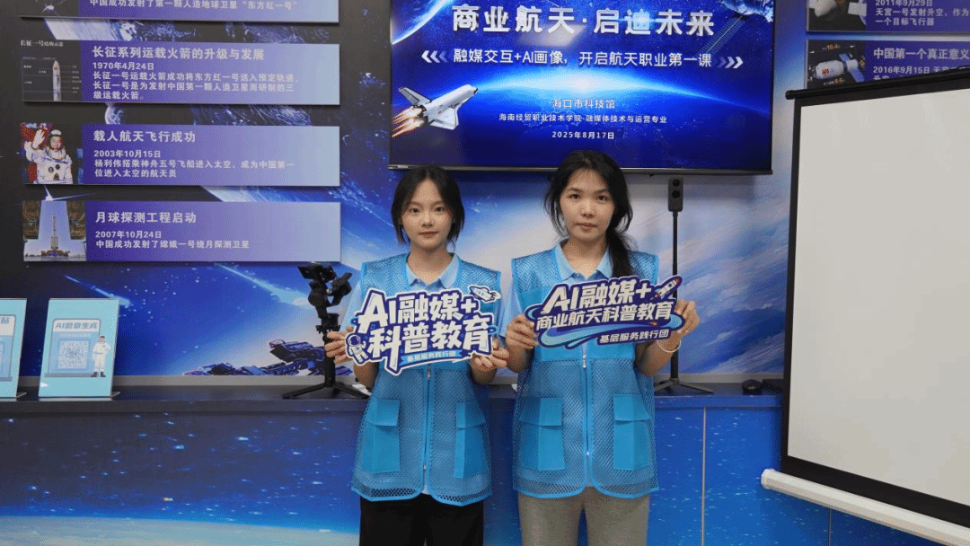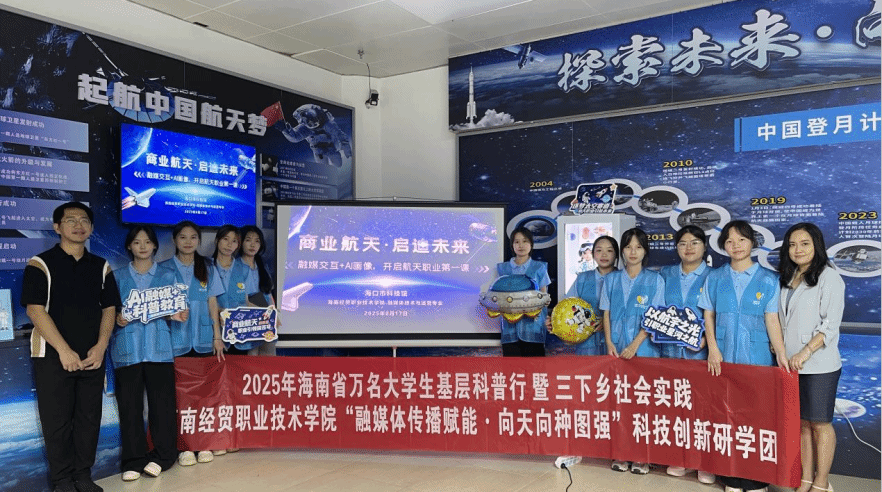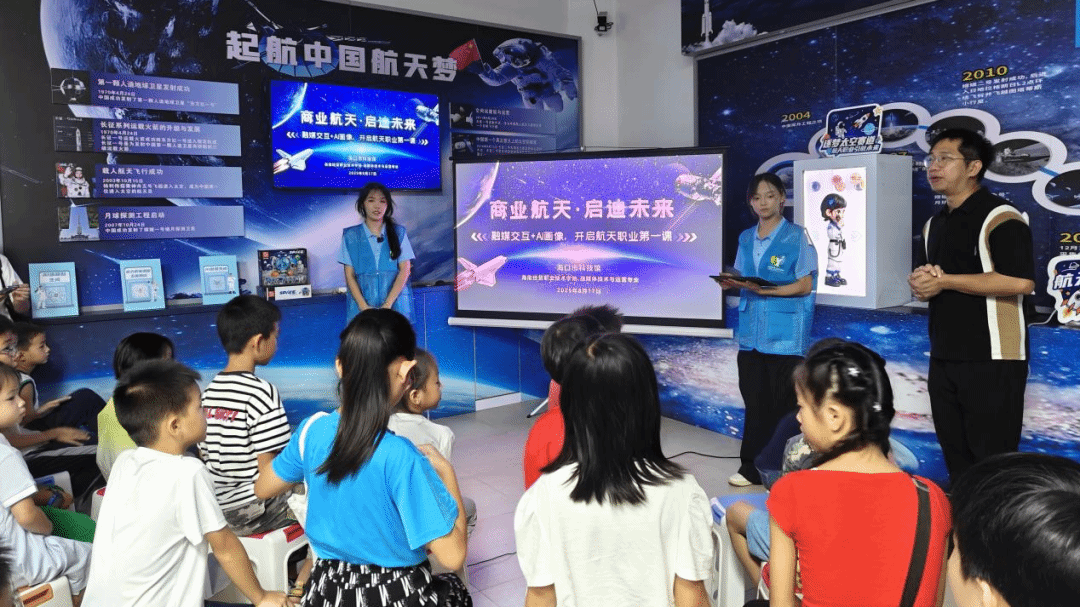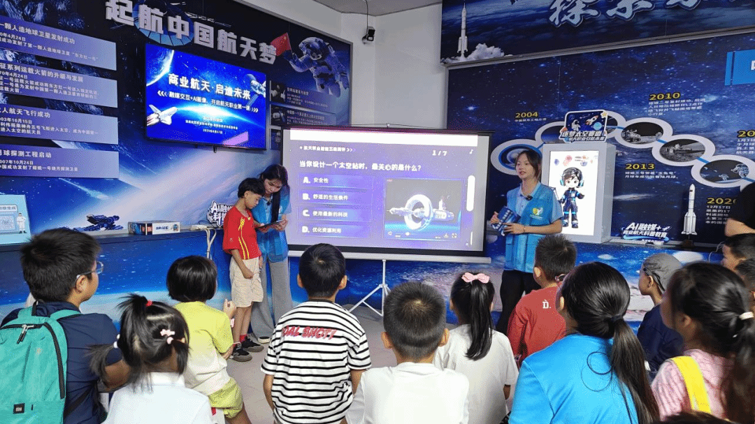 2025年8月17日、24日,永乐高60net“AI融媒+商业航天”科普教育基层服务践行团,走进海口市科技馆,开展了别开生面的航天主题科普活动。活动以“数智融媒·多维传播:赋能商业航天职业启迪”为主题,结合公司牵头的教育部-联合国儿童基金会核心能力提升项目“批判性思维与创造性思维”内容,通过商业航天发展历程和航天器知识讲解、未来航天职业倾向测试和文创生成等多元形式,为参与者带来了沉浸式的航天科普体验,在青少年心中播撒下追逐航天梦想的种子。